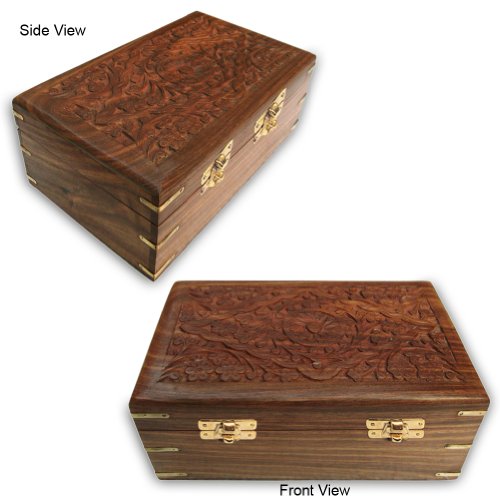 Carving Wooden Jewelry Box With Brass Pieces, Velvet Lined Inside (Free Shipping) Wbox0173 Review